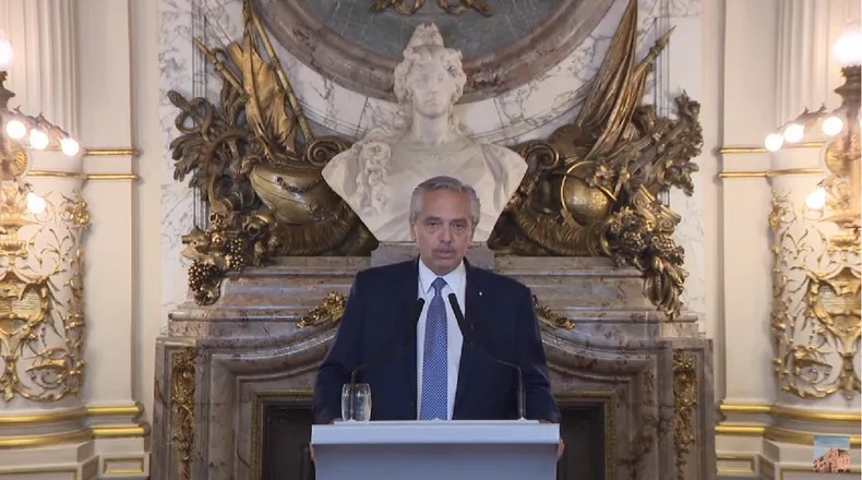 El presidente Alberto Fernández habló este lunes a la siesta a través de cadena nacional, en ocasión de conocerse la filtración de chats entre jueces, funcionarios de la Ciudad Autónoma de Buenos Aires (CABA) y directivos de Clarín, donde se diagramó una estrategia para esconder pruebas que dieran cuenta de un viaje realizado en octubre a la mansión de Joe Lewis, en Lago Escondido. El escándalo se desató este domingo, cuando se conocieron las conversaciones entre magistrados, fiscales, empresarios y primeras líneas del gobierno de la Ciudad, intentando esconder evidencia o directamente advirtiendo sobre la posibilidad de fraguarla.