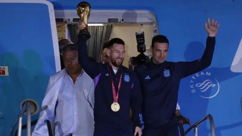 La Selección Argentina de Fútbol y la Copa del Mundo ya están en el país. Los futbolistas y el cuerpo técnico que se consagraron en el Mundial Qatar 2022 arribaron al Aeropuerto Internacional de Ezeiza para celebrar con los hinchas