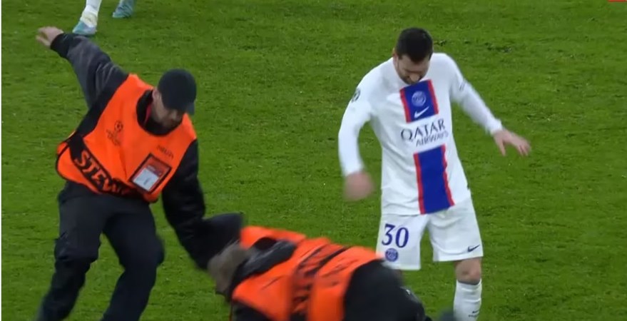 Ante el pitido final del árbitro Daniele Orsato, los jugadores del París emprendieron la retirada del campo de juego y un pequeño, con una remera celeste, llegó hasta la mitad de cancha donde se encontraba el rosarino. Sin embargo, no pudo cumplir su prometido debido a que se patinó en primera instancia y, luego, al querer ponerse de pie, recibió la agresión de las personas encargadas de la seguridad.