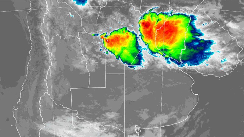 «El área será afectada por tormentas, pudiendo ser algunas localmente fuertes. Las mismas estarán acompañadas por ráfagas, ocasional caída de granizo, intensa actividad eléctrica y fundamentalmente abundante caída de agua en cortos periodos. Los valores de precipitación acumulada se estiman entre 30 y 60 milímetros, pudiendo ser superados en forma puntual», indica el alerta del organismo nacional.