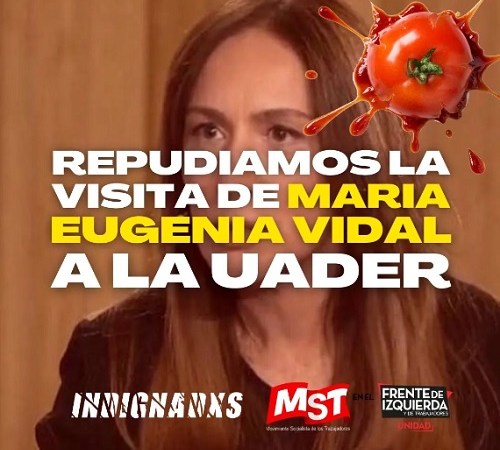 “Ante el recibimiento con honores a la representante de Juntos por el Cambio, María Eugenia Vidal, en nuestra Universidad, repudiamos que la Uader, una vez más, sea utilizada como botín en época de elecciones, ahora recibiendo a María Eugenia Vidal, la cual pertenece a un espacio político que actuó conscientemente durante 4 años para desfinanciar y vaciar a la universidad”, señalaron desde la agrupación Indignadxs, a la vez que recordaron que “las tomas del 2018 fueron una respuesta de toda la comunidad en contra de estos recortes”.