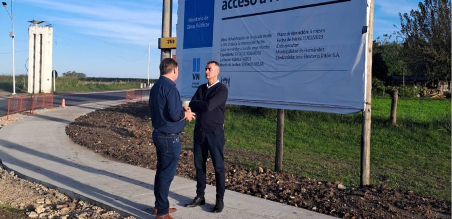 Junto al intendente de Hernández, Luis Gaioli, recorrimos los trabajos que se llevan adelante en el marco de la obra de «Rehabilitación de Calzada Acceso a Hernández desde Ruta Nacional N° 12».