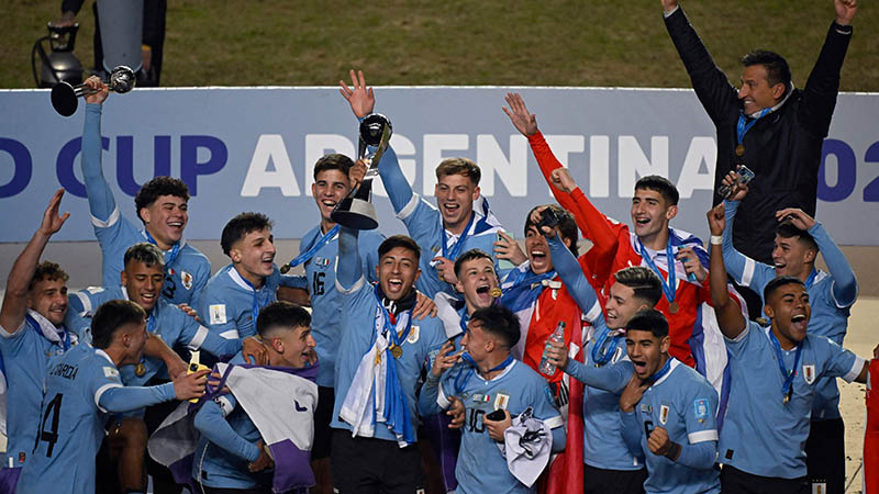 La selección de Uruguay de consagró campeona del Mundial Sub 20 celebrado en Argentina tras vencer 1 a 0 Italia en la final disputada en el estadio Diego Armando Maradona de La Plata y consiguió su primer título de la categoría en tres partidos definitorios que jugó en su historia.