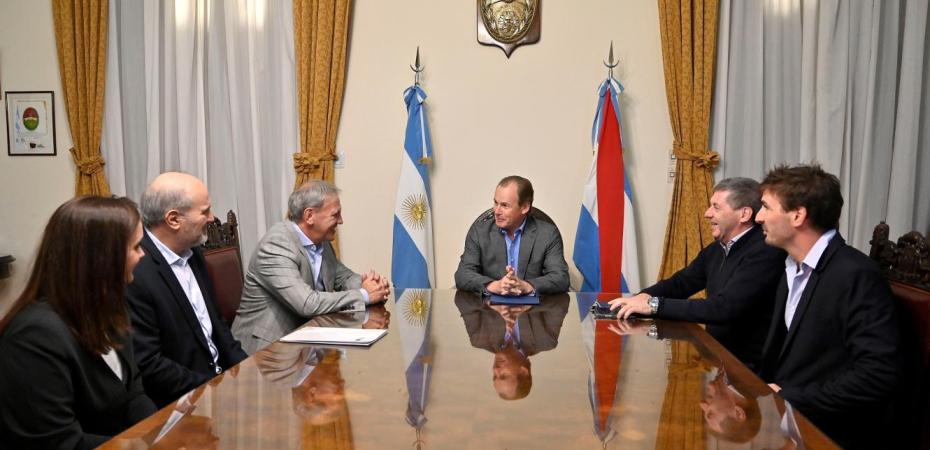 Acompañado por el ministro de Economía, Hugo Ballay, Bordet recibió este jueves en el Salón de Acuerdos de Casa de Gobierno al presidente de la UIER, Gabriel Bourdin, el secretario, Eduardo Tonutti y la vocal María Eugenia Hillairet.