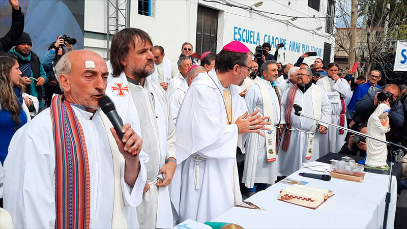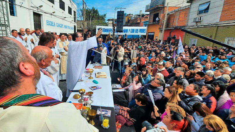 Al término de la celebración, el Padre Pepe, en declaraciones a la prensa, apuntó también contra el fundador de La Libertad Avanza. «Estamos ante una persona que es candidato, que hizo una buena elección y que hay gente de nuestros barrios que lo votó. Es importante que lo sepa y que lo sepa nuestra gente», puntualizó.
