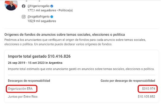 Uno de los hallazgos más intrigantes es la existencia de una misteriosa ONG llamada «Organización ERA» que ha gastado alrededor de 300 mil pesos en publicidad en el marco de esta campaña. Este gasto, aparentemente no declarado como publicidad oficial, plantea cuestionamientos sobre la fuente de estos fondos y sus verdaderos objetivos.