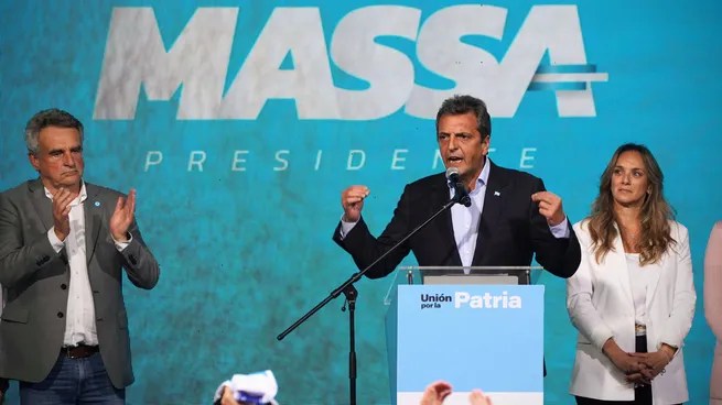 El candidato presidencial de Unión por la Patria, Sergio Massa, habló en el Complejo C tras quedar ganar las elecciones generales y quedar como primera fuerza de cara al balotaje, donde enfrentará al líder de La Libertad Avanza, Javier Milei.