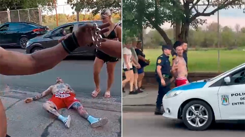 Tal como se puede ver en el video que se viralizó en las redes, Noir estaba acompañado por su novia, Sophia Ramos, y, antes de ser subido al patrullero que lo llevó detenido gritó: “Tomatela, muerto de hambre