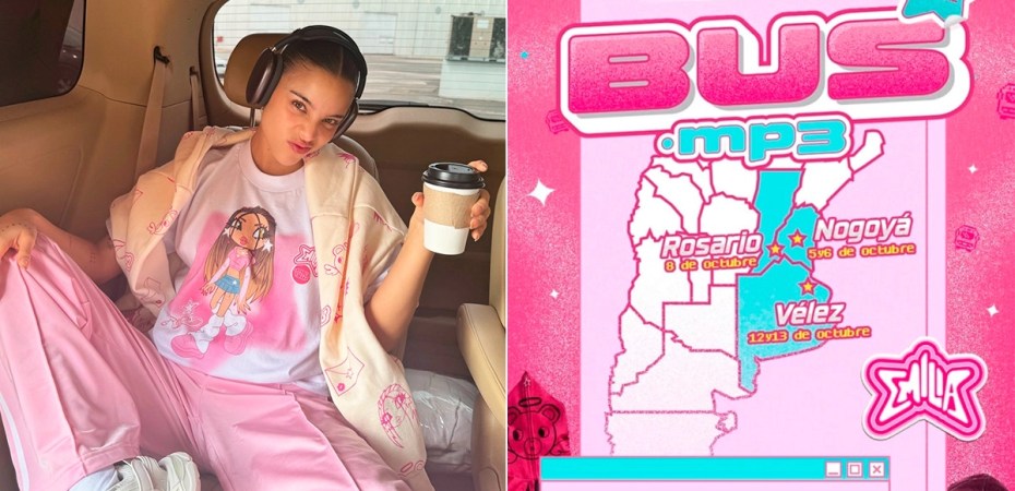 En el marco de esta gira, Emilia confirmó este miércoles, luego de anticipar un nuevo single, que su Merch Bus, un colectivo con artículos promocionales de su presentación en Vélez, unirá su ciudad natal, Nogoyá con el estadio ubicado en la zona oeste de la Capital Federal.