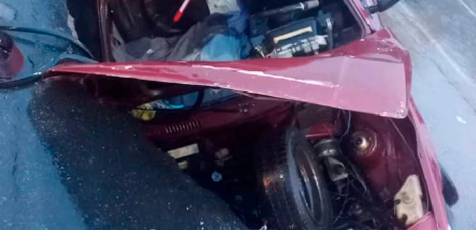El vehículo quedó atascado en el hueco y destruido. Casi como un milagro, el conductor resultó con lesiones leves, fue atendido por el servicio de emergencias y luego relató el dramático momento a Arriba Córdoba.