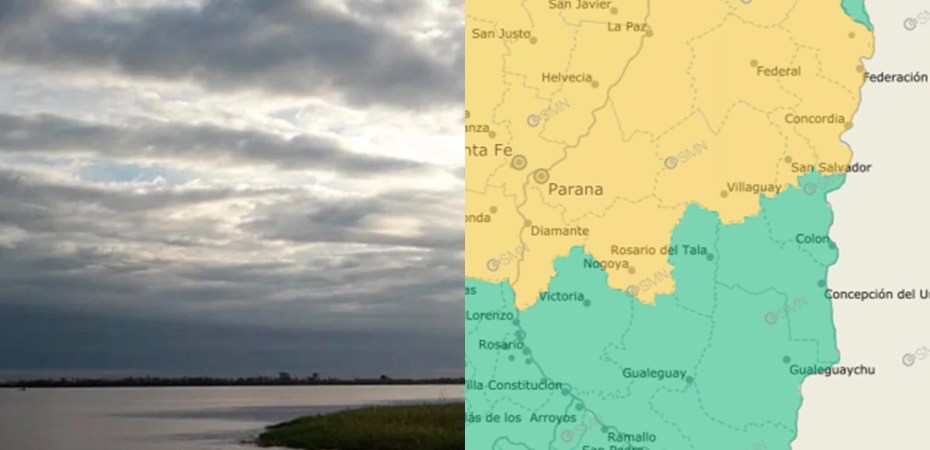 El Servicio Meteorológico Nacional emitió una alerta amarilla para la madrugada y tarde de este martes en gran parte de Entre Ríos.