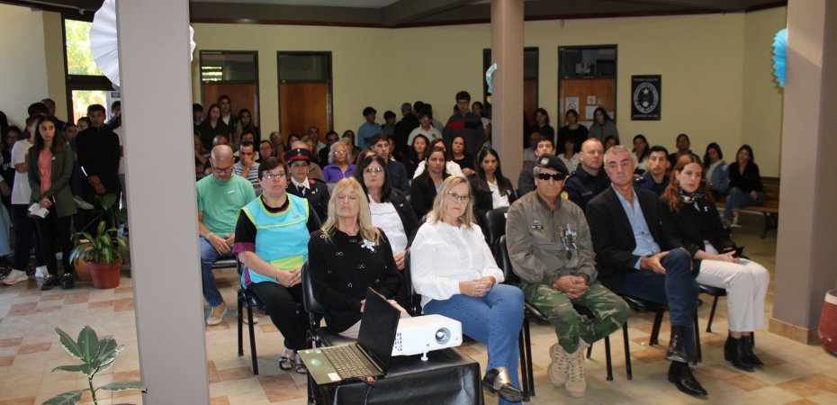 En presencia del Intendente Luis Gaioli, funcionarios municipales, representantes de la Comisaría local, Bomberos Voluntarios, instituciones y organizaciones locales, veterano y familiares de veteranos fallecidos, se realizó un minuto de silencio en honor a los soldados caídos.