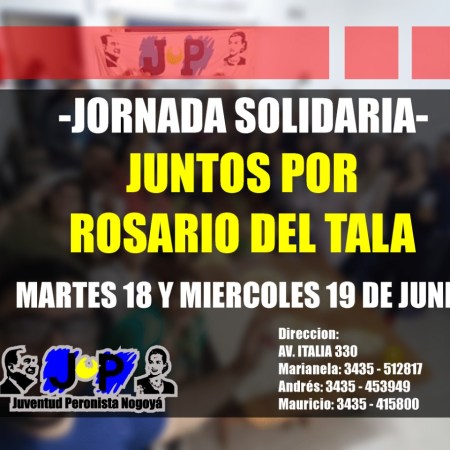 La Juventud Peronista realiza campaña solidaria para los talenses inundados