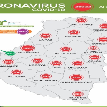 Se registraron 203 nuevos casos de coronavirus en Entre Ríos