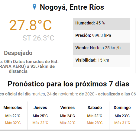 Se espera una jornada de mucho calor en Nogoyá y luego llega la lluvia