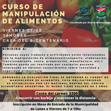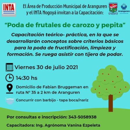 El Área de Producción Municipal de Aranguren y el INTA Nogoyá invitan a la Capacitación