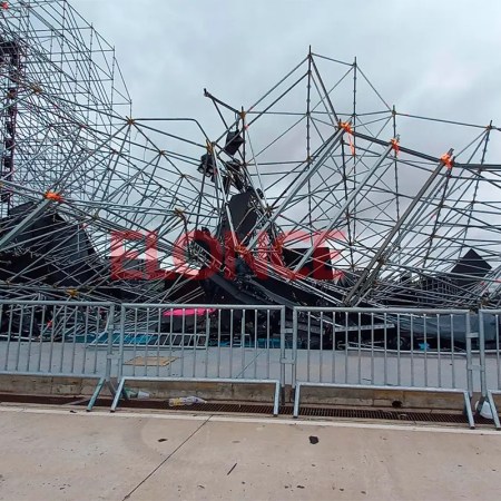 Temporal en San Nicolás derribó estructuras del escenario de la Fiesta de Disfraces: las fotos