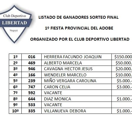 28 febrero, 202128 febrero, 2021 nogoyaactual Listado de Ganadores Sorteo Final de la rifa del Club Libertad