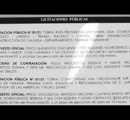 Gustavo Bordet confirma licitación de tres obras.